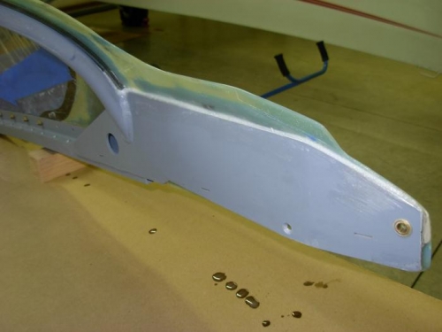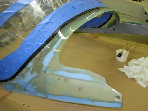 Sanded on canopy and applied another coat of fiberglass epoxy.