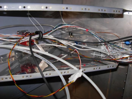 Continued pulling wires in fuselage.