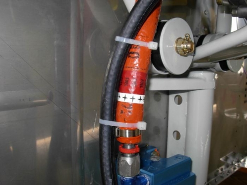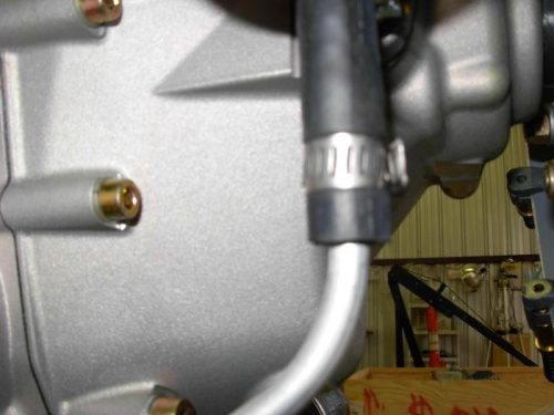 Connected drain tube from fuel pump through cushion clamps on bottom of engine down to gascolator.
