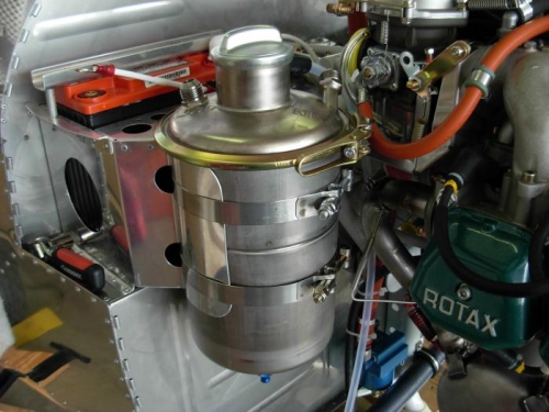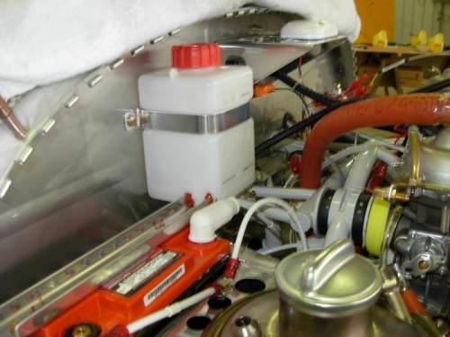 Installed oil tank and water bottle.