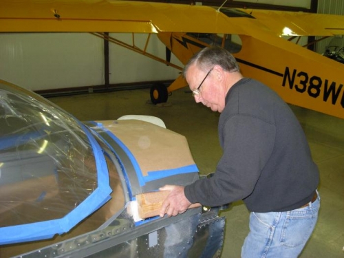 Worked on glass fabric canopy fairing lay-up.