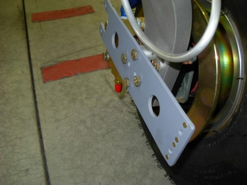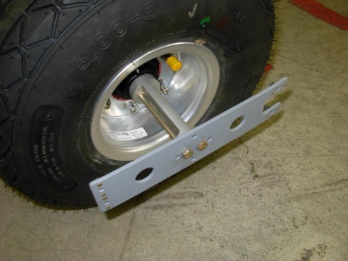 Attached bracket mounts and wheel fairing brackets to both main wheels.
