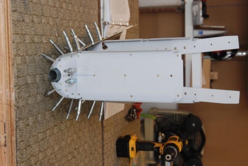 Initial assembly of the tailwheel assy. Like the tanks, it takes some persuasion and gentle re-forming of the stiff parts to get everything to close and to cut in mouse hole for the weldment.