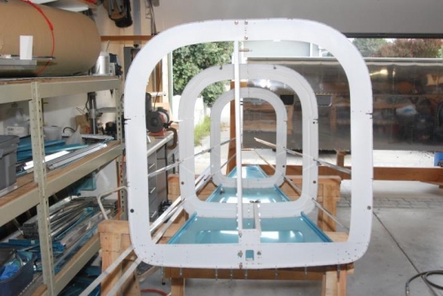 Begin assembly of tailcone on saw horses. Put J-channels in place in rib slots and cleco on bottom skin. Test fit.