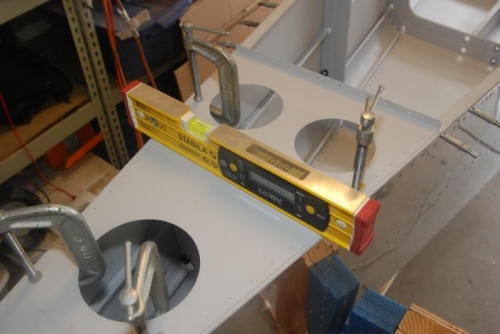 Jigged up fuse to be level front and back, clamped aft deck and drilled it in. There were no issues getting the spar and aft deck level. Had to introduce a slight reverst twist (< 1 deg) to bring them into alignment.