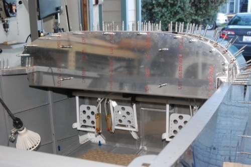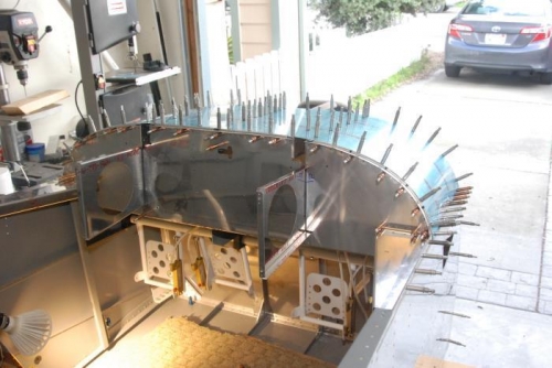 Install forward ribs and front skin to stiffen the fuse and test panel for fit. Disassemble, clean, prep, and prime.