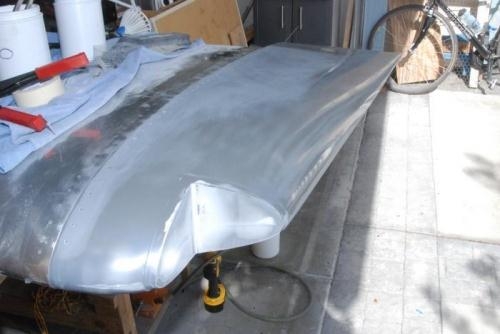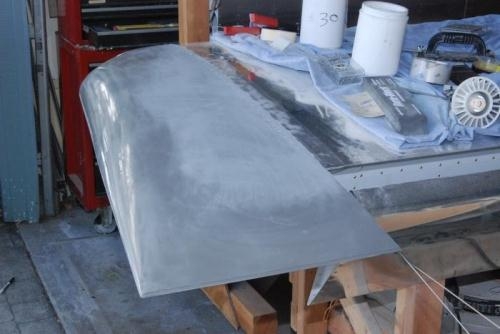 Reassembled the tip and preped the the top surface for filler. The scuffed section is the saggy area; this will be filled to flatten the transition and to fill the pop rivet mounting holes.