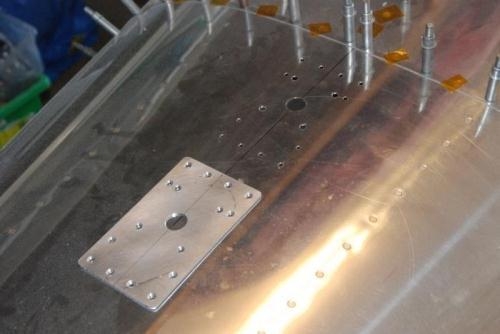 Drilled the GPS antenna mount to the fuse skin behind the bulkhead that also supports the static ports (forward end of the aft top skin). I will have to clean the primer off the inside of the skin and alodine for a good electrical bond.