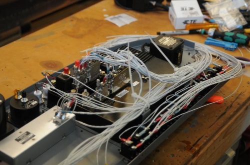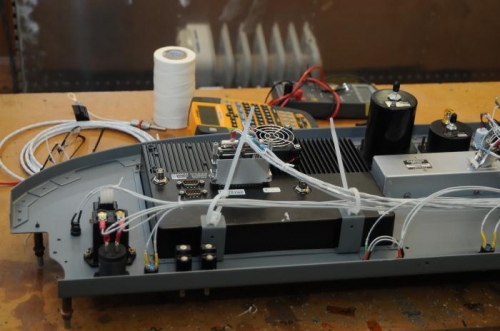 Start to wire up panel. On the bench, all wire runs andconnectors were laid out and routed. Connected the components and begin lacing.