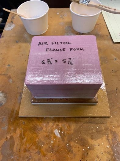 Epoxy seal the plug mold to be used to fab a fiberglass flange and filter holder for the engine snorkel.