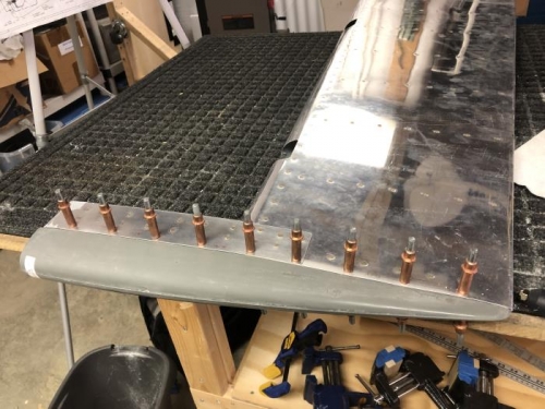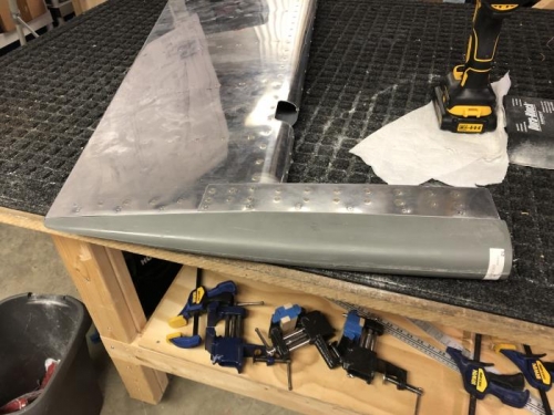 Riveted tip onto right elevator using CS-4-4 pop rivets.