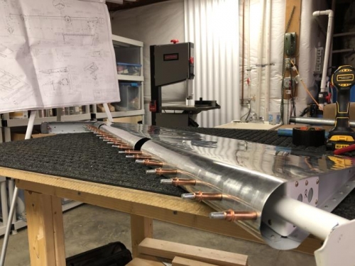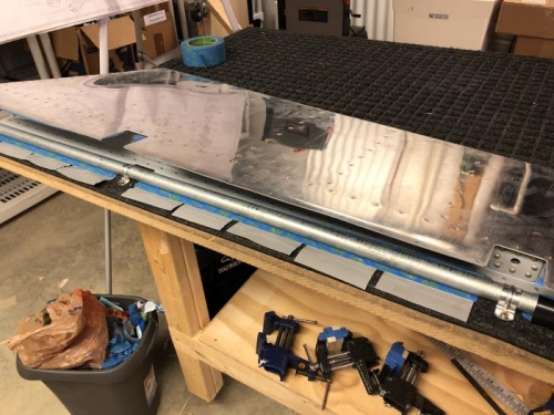 Finally couldn't put it off any longer and rolled the rightelevator leading edge. Used a pair of pipe clamps to keep pressure down on the skin during roll to prevend a bend at the bulkhead edge. Pretty happy with the result. Left elevator and rudder next.