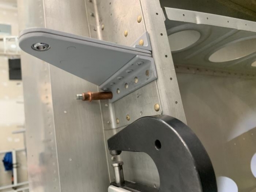 Riveted aileron brackets to wing. Was able to squeeze all but the most inboard rivets. Have a 4" Squeezer yoke on the way from Cleaveland tools along with my new pneumatic squeezer. The 4" yoke should reach them. If not, I'll just drive them.