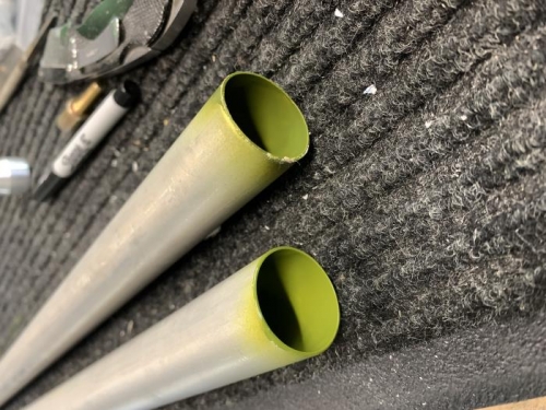 Primered inside ends of larger aluminum push rods that will mate with rod ends.