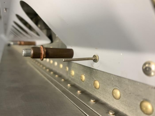 Squeezed inboard Flap brace rivet. Used a 4-10 and cut it down to 4-9 for better fit.
