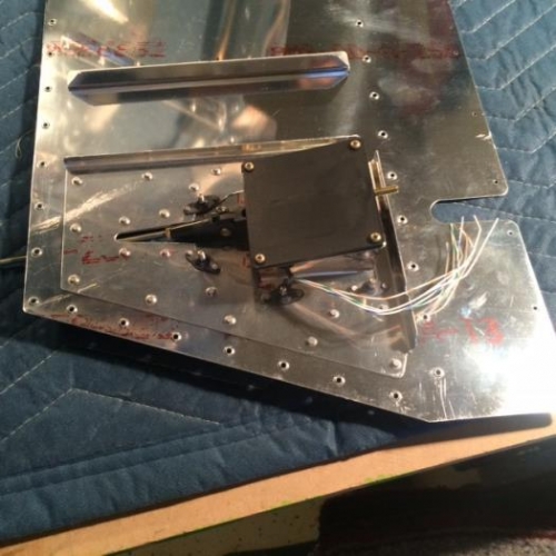 Build up of electronic trim system. Align rod / linkage. Bolt to stand and mark rivet holes