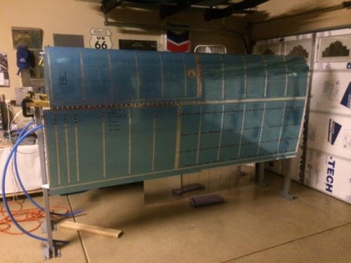 Jennifer and I finished up riveting the right wing top skin. Then I clecoed the left wing and set rivets/tap for our next session