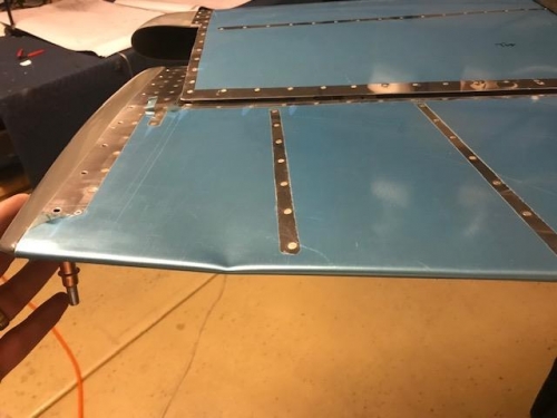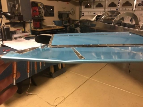 While preparing to bolt on the left elevator I set the elevator leaning against the saw horse while I grabed the needle nose pliers to insert the bolt. The elevator fell and with a 2 lb counter weight it wrinkled the trailing edge of the elevator. Putting me into a state of depression.