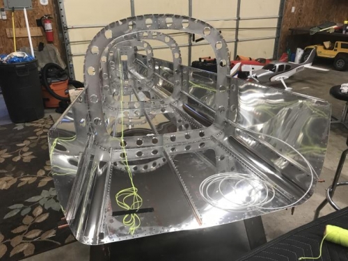 Clecod in aft former to tailcone. Clecod left and right skins to tail cone. Routed string through tail cone for stabilator cables. Routed the trim tab wires through tail cone out the aft end.