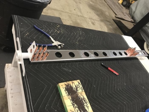 Began Rudder skeleton construction. Deburred all parts, riveted ribs and hinges to spar.