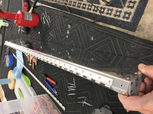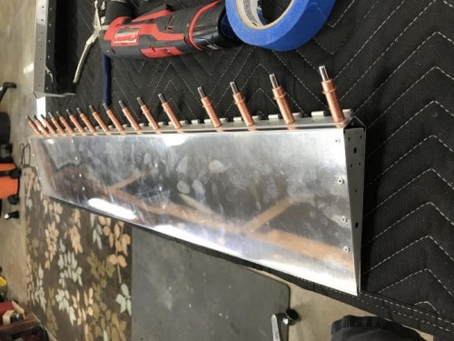 Used drill guide to drill holes in Anti Servo Tab hinges. Installed hinges onto AST. Completed riveting of Anti Servo Tabs