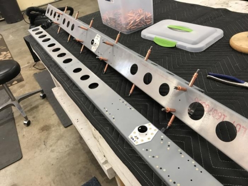Fabricated Hinge stops, Seperated rib clibs and deburred. Riveted spar cap together in called out locations.