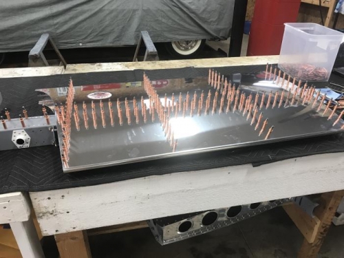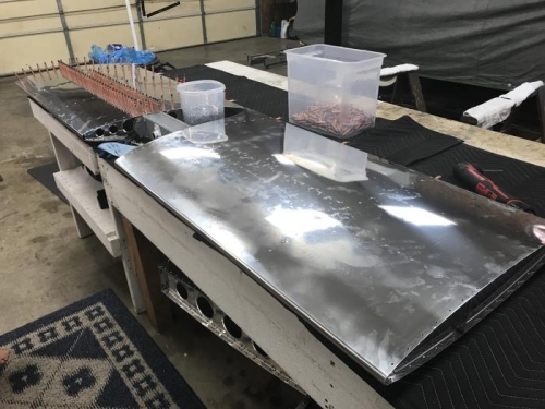 Installed skin on to Stabilator skeleton. Riveted called out places in top and bottom skin left and right