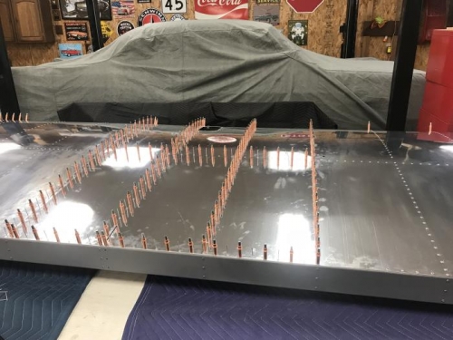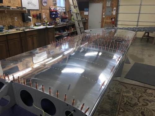 Debured the 1202-L skin and Cleco to the skeleton. Riveted in called out locations.
