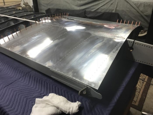 deburred inner wing skin and doubler. Clecoed and final drilled out holes called for the larger BSPQ rivets. Removed and deburred drilled holes. Clecoed skin back down and riveted in called out locations.
