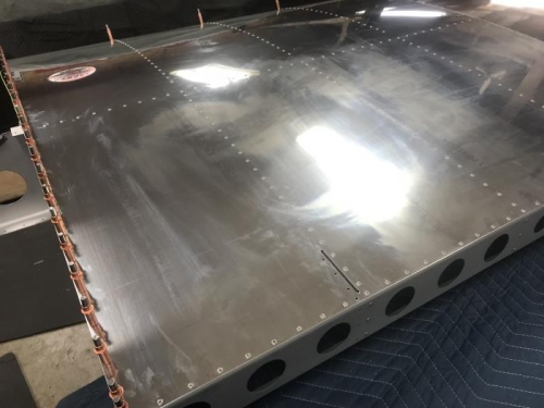 Deburred and installed outer right wing skin. Riveted in called out locations
