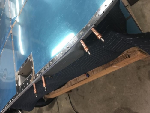 Trimmed fiberglass fairing for nav and strobe lights and fit to wingtip. Used epoxy/ flox to fill gap in upper edge as described in plans. Let sit overnight