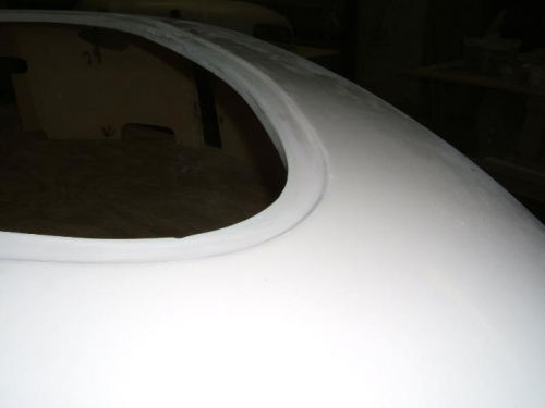 Did more filling and sanding of air pockets in the left cabin half.