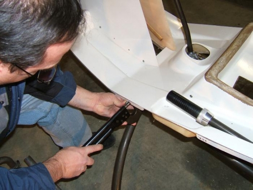 Located and drilled two bolt holes for upper plate of lift strut attachment to frame.